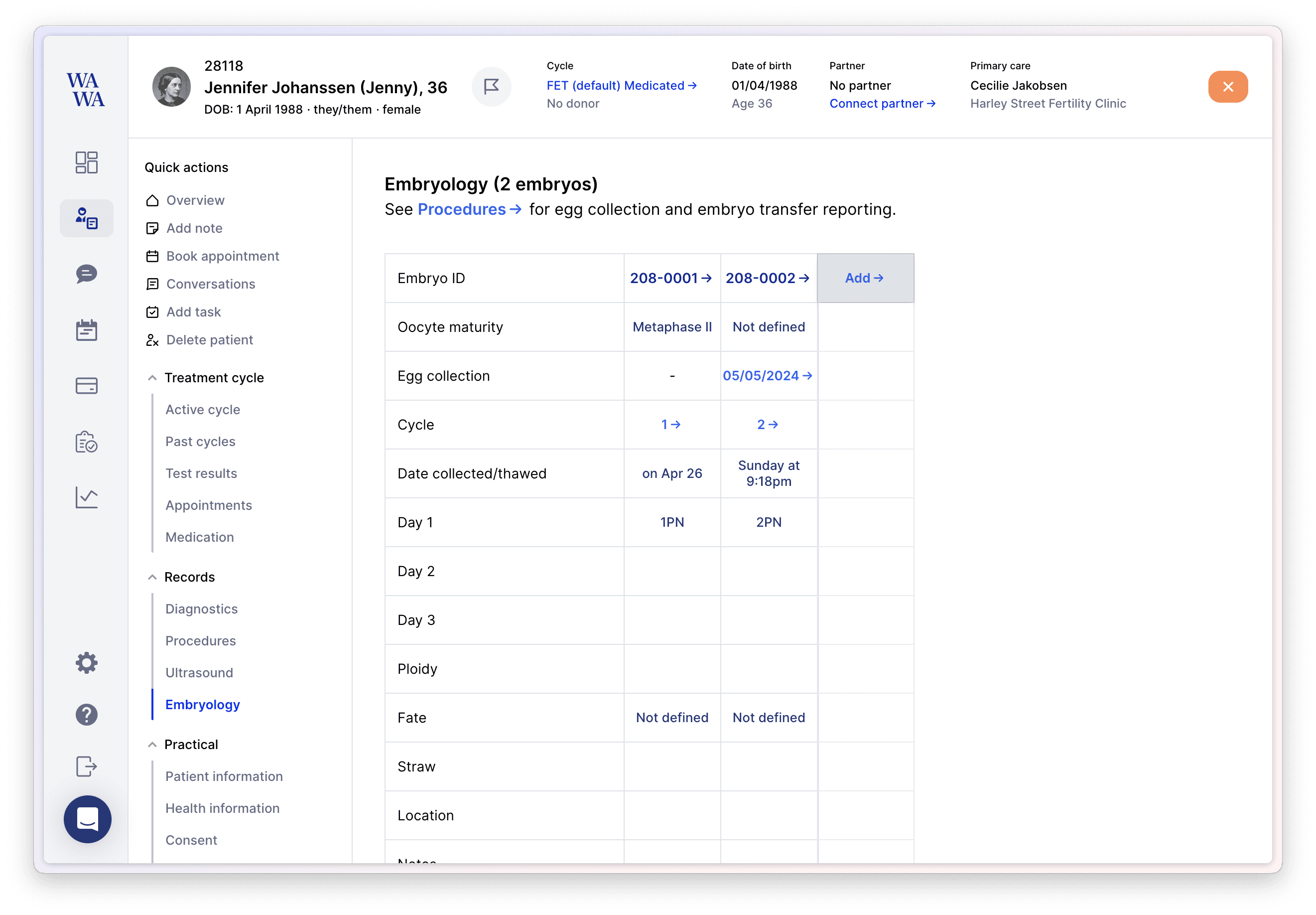 Improved the sidebar on the patient page. It has been re-arranged to be more intuitive thanks to your feedback. “Laboratory” is now “Records” with individual sections for Diagnostics, Procedures, Ultrasound and Embryology.